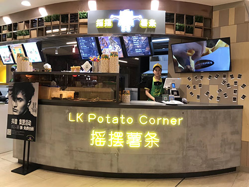 LK Potato Corner于美國、澳洲、泰國、印尼、巴拿馬等共開900多家分店,中國的第一家門店選址在杭州湖濱銀泰百貨,該店吸排煙設備選用的就是多環(huán)牌無管式油煙空氣凈化機,而且后續(xù)各個加盟連鎖店將標配”多環(huán)“無煙管油煙空氣凈化機。