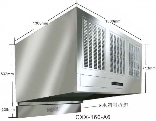 冷凝降溫系統(tǒng):設(shè)備配備冷凝吸熱降溫系統(tǒng),有效降低室內(nèi)溫度,同時回收利用烹飪中燃具產(chǎn)生的余熱,相當(dāng)于在廚房安裝了一臺水冷空調(diào)。